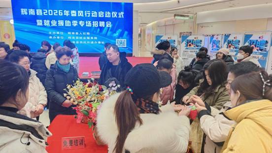 为扎实做好稳就业保民生工作,全力服务企业用工和劳动者求职需求,2月12日上午9时,辉南县人社局联合西凤街道在颐合城市广场一楼大厅,举办“辉南县2026年‘春风行动’启动仪式暨就业援助季专场招聘会”,正式拉开全年就业服务系列活动的序幕。